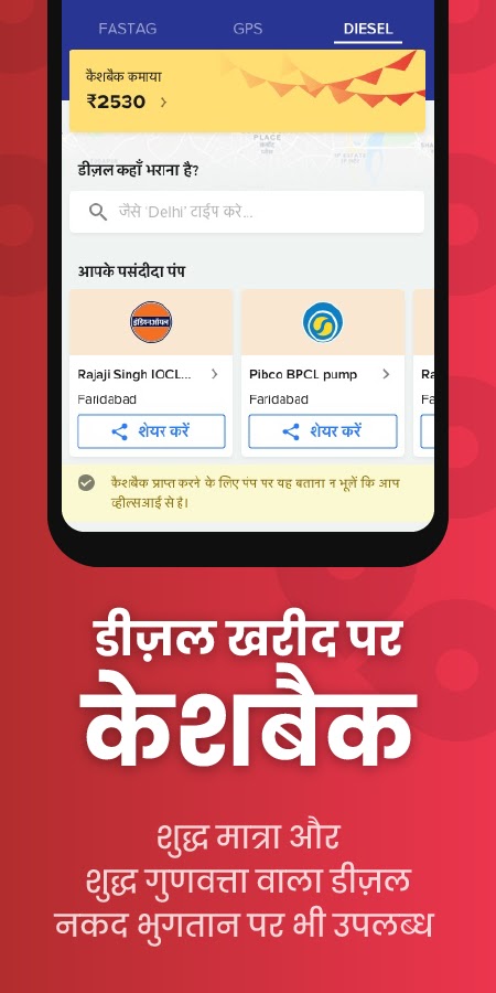 Кэшбэк доступен при каждой покупке дизельного топлива, сжатого природного газа или масла в 18000+ HPCL Pumps »