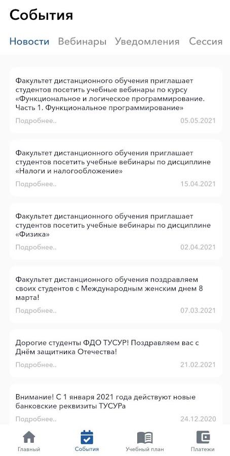 — получать самую актуальную и своевременную информацию обо всех событиях: новостях, вебинарах, начале сессии;