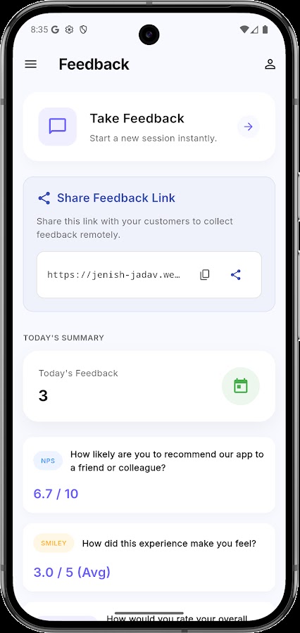 Узнайте, что на самом деле думают ваши клиенты, и принимайте решения, основанные на данных, для развития вашего бизнеса. Приложение для управления отзывами — это комплексное решение, разработанное для предприятий любого размера, позволяющее легко собирать, управлять и анализировать отзывы клиентов. Независимо от того, управляете ли вы розничным магазином, рестораном, выставочным стендом или онлайн-сервисом, наше приложение предоставит вам инструменты, необходимые для того, чтобы прислушиваться к вашей аудитории.