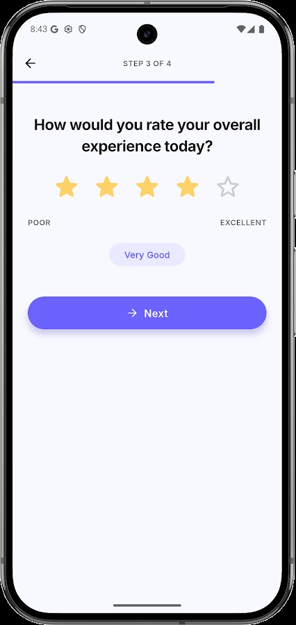 🎨 Персонализация бренда Сделайте процесс обратной связи уникальным. Настройте свой общедоступный портал и интерфейс киоска, указав название вашей компании, собственный логотип и персонализированный приветственный подзаголовок, чтобы обеспечить безупречный фирменный стиль.
