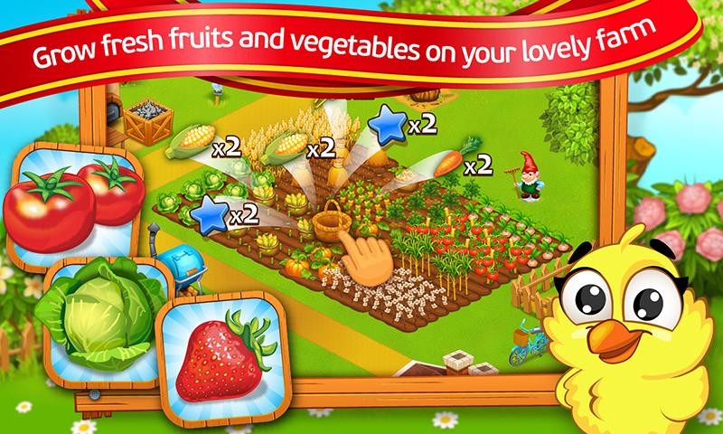 Пригласите всех своих друзей в милую ферму у города! Выращивайте свежие посевные как сено, овощи, фрукты, и ягоды. Развивайте и обустраивайте свою ферму, выполняя заказы на собственном грузовике. Позаботьтесь о милый животных — здесь вы найдете корова, свинья, павлин, овцы, страусы и многие другие животные.