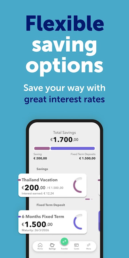 * За дополнительные услуги может взиматься комиссия за транзакцию. * Multitude Bank P.L.C. является частью Мальтийской системы гарантирования вкладов. * 3,20% годовых. фиксированный процент по сбережениям сроком на 12 месяцев. Проценты выплачиваются ежегодно. Минимальный депозит 50 евро. Условия и положения доступны по запросу.