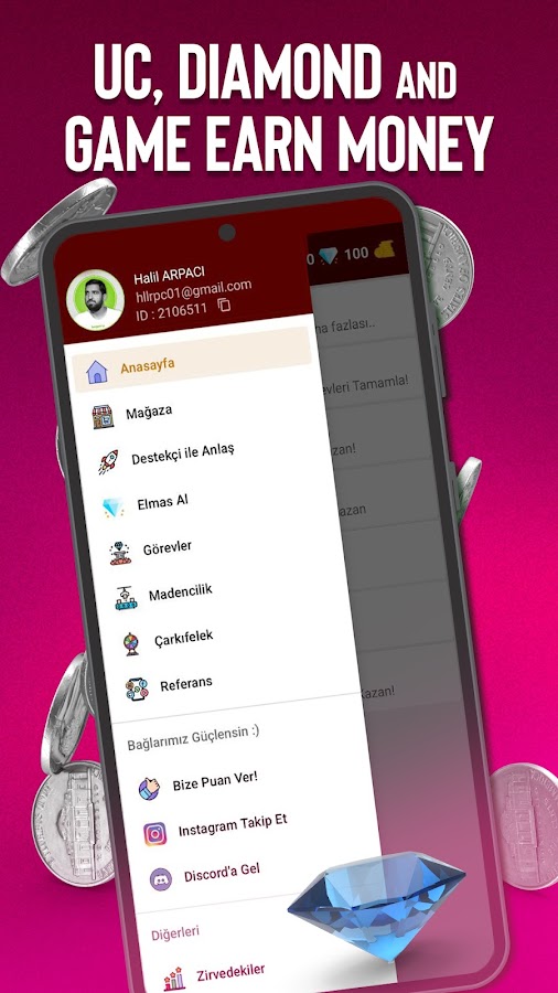 Кроме того, очень легко зарабатывать алмазы, приглашая друзей. Нажмите кнопку “Пригласить друзей” в приложении и поделитесь ссылкой, созданной специально для вас, со своими друзьями. Заработайте тысячи золотых монет за каждого пользователя, который заходит в приложение по вашей приглашающей ссылке.