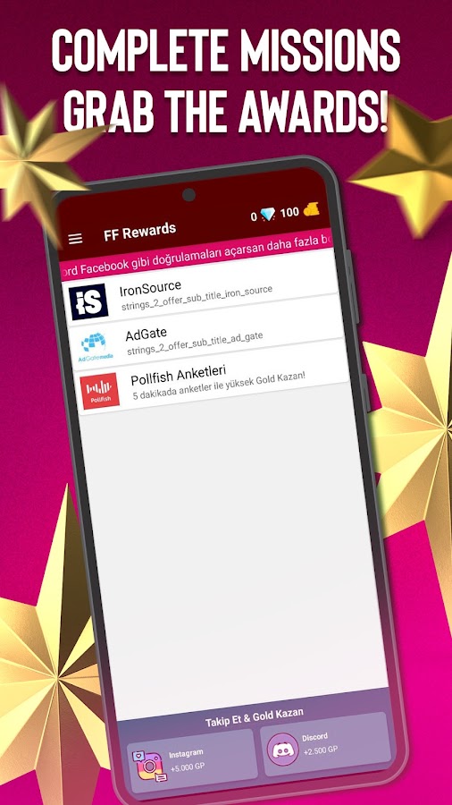Получите тысячи бриллиантов и привилегий прямо сейчас с помощью FF Rewards. Накапливайте золото сразу с помощью различных квестов или игр, зарабатывайте тысячи бриллиантов!