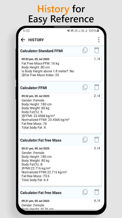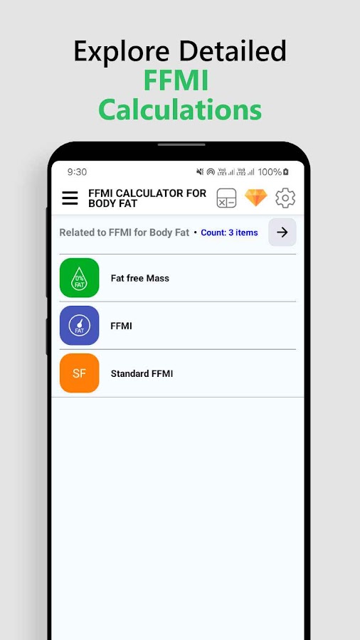 ► Простые расчеты FFMI: быстро вычисляйте свой индекс безжировой массы, введя свой вес, рост и процент жира в организме для мгновенного получения результатов.