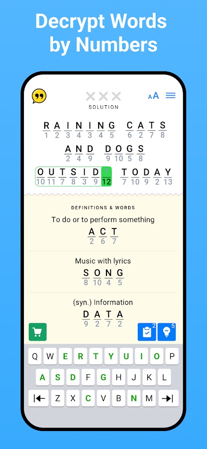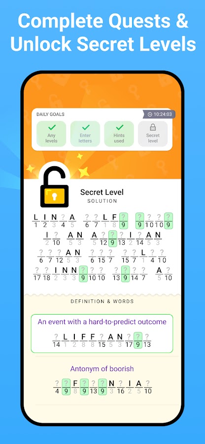 Забудьте про скучные сканворды, кроссворды, поиск слов или другие классические словесные игры. Figgerits это современная криптограмма — супер тренировка для мозга.