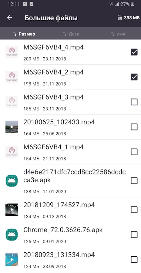 2. Большие файлы: быстро найти все большие файлы на вашем телефоне. Поддержка сортировки по размеру / дате / имени.