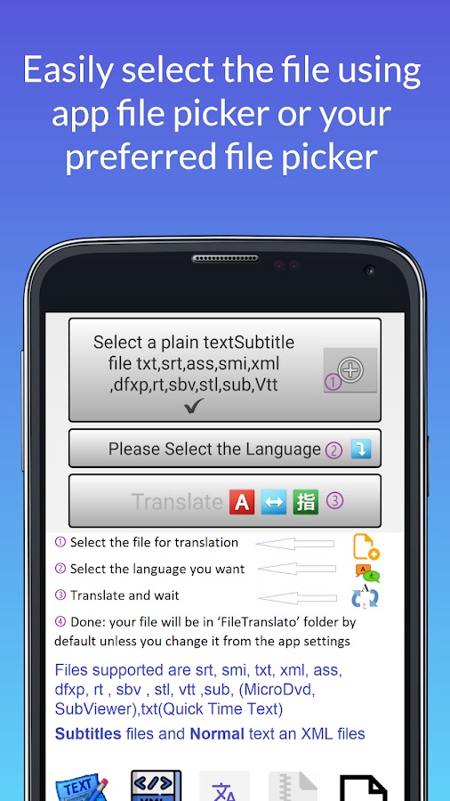 ✅ Приложение очень простое в использовании ● Выберите файл ● выберите язык ● переведите