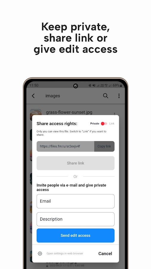 — Частное облако и улучшенная безопасность: получите выделенное частное облачное хранилище с расширенными функциями безопасности, включая подробные журналы доступа, защищенные паролем ссылки и соответствие требованиям GDPR.