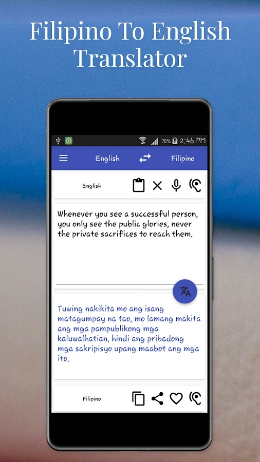 * Филиппинско-английский переводчик и английский-филиппинский перевод — это обязательное приложение для любого путешественника по всему миру. Оно очень поможет вам в общении с местными жителями.