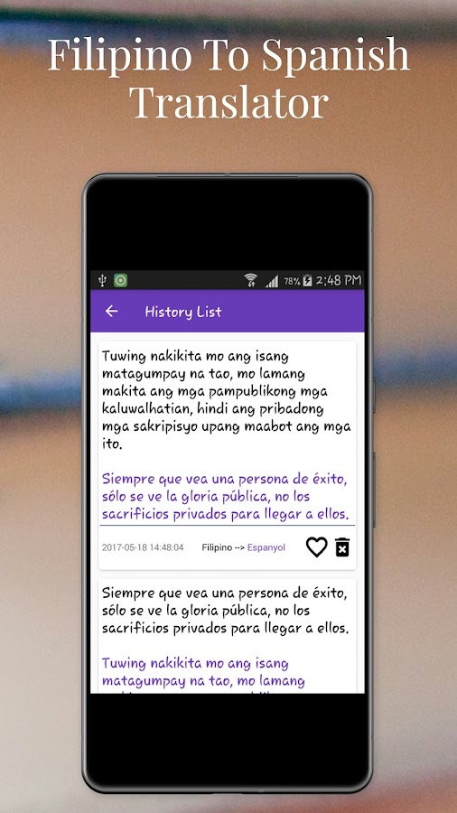 * Филиппинско-испанский переводчик и испанско-филиппинский перевод — это обязательное приложение для любого путешественника по всему миру. Оно очень поможет вам в общении с местными жителями.