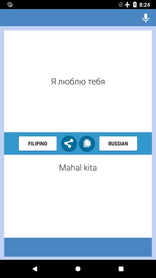 Filipino-Russian Translator приложение — бесплатное и удобное в использовании. Вы можете перевести текст и письма с филиппинского на русский и с русского на филиппинский. Вы можете использовать этот конвертер на работе, в школе, в датировке, во время поездок или во время командировок, чтобы улучшить мастерство этих двух языков, а также вы можете использовать это как филиппинско-русский и русско-филиппинский конвертер, переводчик, словарь.