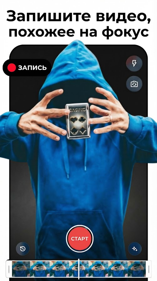 Приложение «Фильм наоборот cо спецэффектами» (Reverse Movie FX или реверс) позволяет создавать видео в обратном режиме, которое выглядит как волшебный трюк или магия! Сначала запишите кого-нибудь (или себя) на видео: как он ходит, пьет апельсиновый сок, разговаривает или любое другое действие, которое вам придет в голову! Нажмите старт! Приложение обратит ваше видео вспять: вы увидите, как люди станут пятиться назад, ваш друг будет выплевывать сок и все станут разговаривать задом наперед!