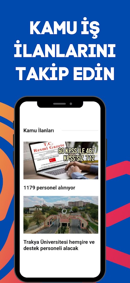 Будьте в курсе новостей о государственных служащих, новостей KPSS, кадровых наборов, зарплат государственных служащих и срочных новостей государственного сектора. Получайте доступ ко всем объявлениям о наборе персонала в государственный сектор, уведомлениям KPSS, назначениям, повышению заработной платы и другим событиям по всей Турции через наше приложение.