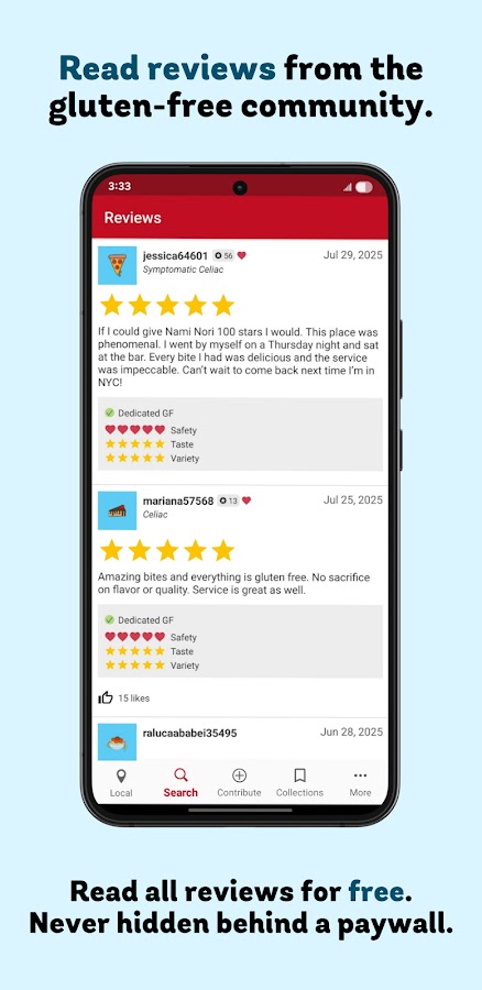 The best gluten-free restaurant finder out there! Whether you’re celiac or on a gluten-free diet for other reasons, Find Me Gluten Free helps you easily eat gluten-free. Find restaurants, fast food, bars, cafes, grocery stores and more! Easily find dedicated gluten-free places with one tap. Search your current location or a specific address. View menus, call, or get directions for each business. View others’ ratings and reviews and submit your own. We’re constantly adding businesses, so suggest your favorites. Happy gluten-free dining!