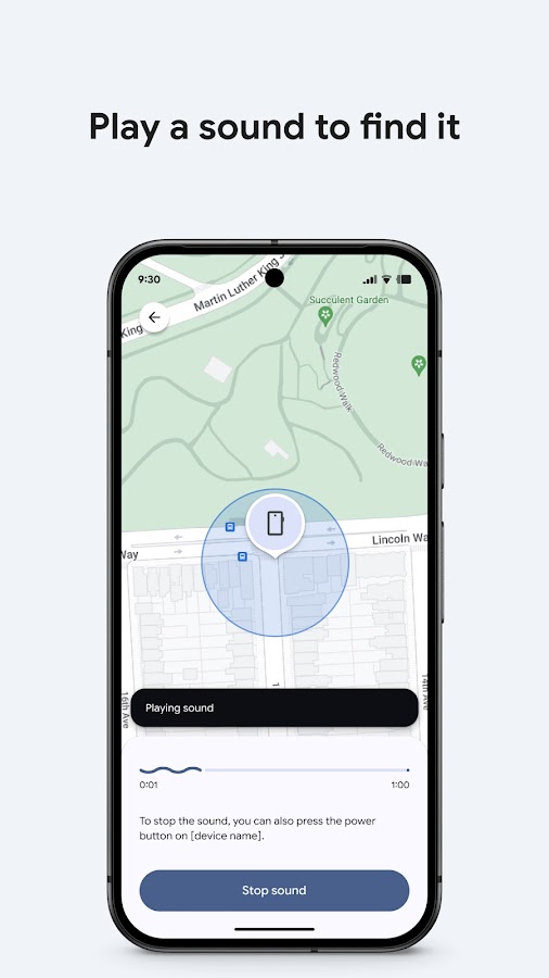 • Воспроизводите звук на устройстве, если оно потерялось поблизости.