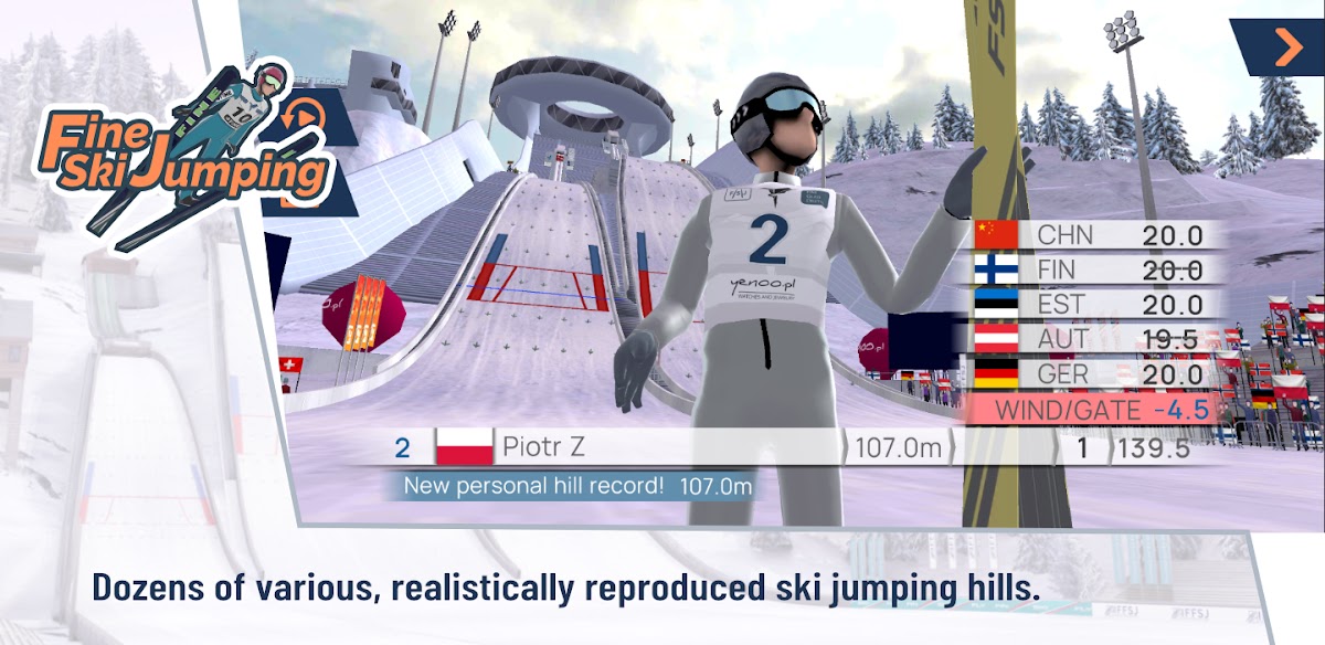 Скачайте игру Fine Ski Jumping для Android бесплатно - последняя версия (0.9231) уже доступна для установки на ваш телефон или планшет.