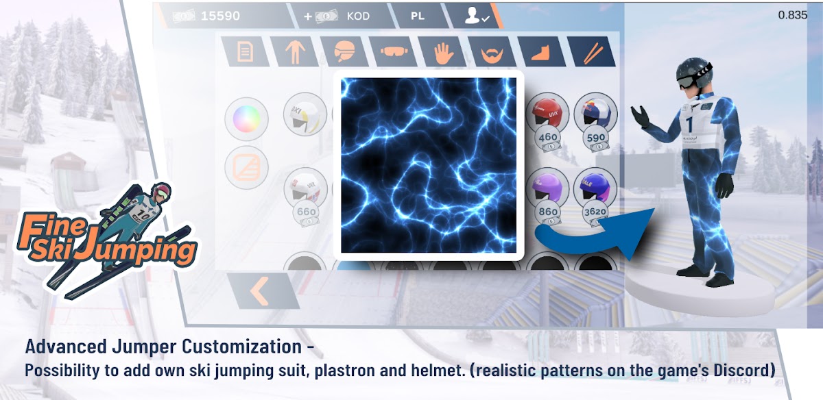— Реалистичные дизайны шлемов, лыж и костюмов