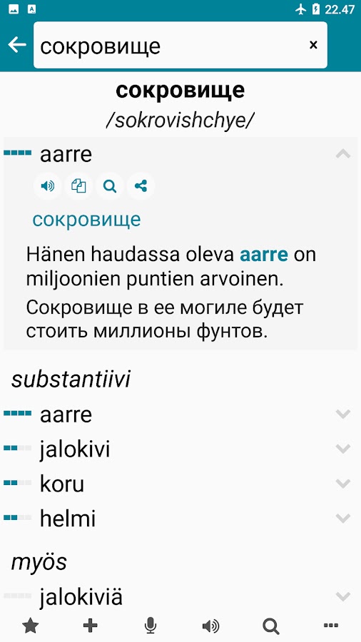 Быстрый русско-финский офлайн-словарь, альтернативный перевод, часто используемые финские предложения, тесты (письмо, аудирование, говорение) и игры…