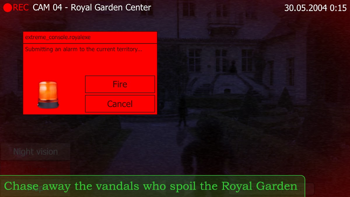 После покупки новой квартиры вам срочно понадобилась хорошая работа, и вам удалось устроиться на работу к богатейшему человеку в Праге. На его королевский сад часто налетают какие-то вандалы. Вы должны будете работать ночным охранником королевского сада и следить, чтобы ни один вандал не пробрался в сад. Инструкции вам объяснит главный слуга короля Фроггольда Второго.