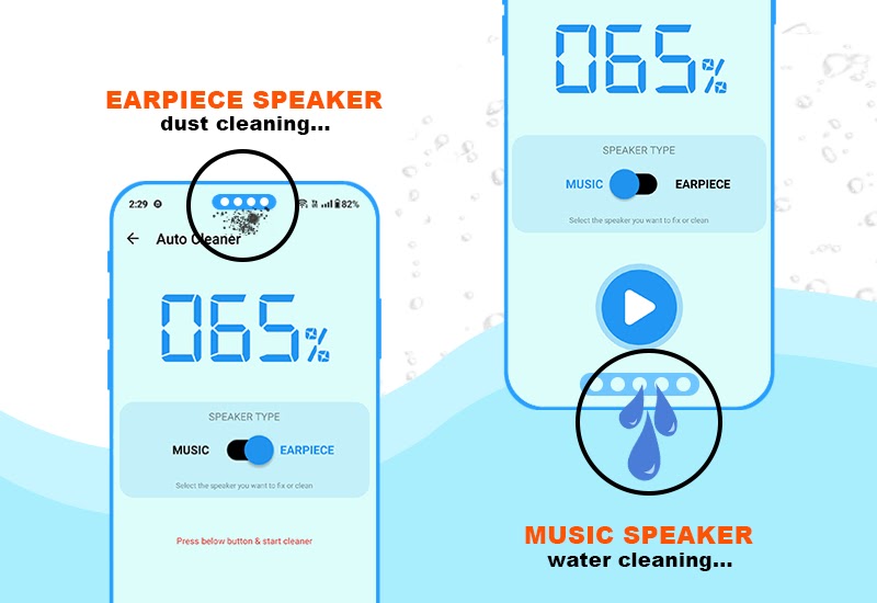 Получите максимальный эффект от Clean & Sound!Fix My Speaker & Boost Sound — это приложение для удаления воды из телефона, поскольку оно удаляет влагу и одновременно улучшает качество звука. Оно также удаляет пыль из динамика безопасными и эффективными методами, которые обычно используются в приложении Clean Speaker. Приложение можно использовать как в автоматическом, так и в ручном режиме с помощью приложения Clean Speaker. Используйте приложение Dust Remover From Speaker Boost для легкого и быстрого удаления стойких загрязнений.