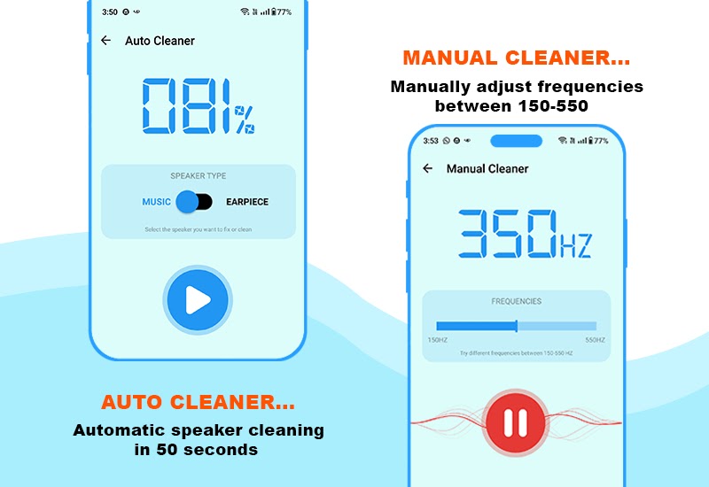 🔊 Работает как комплексное приложение для очистки динамика от пыли и воды из телефона.