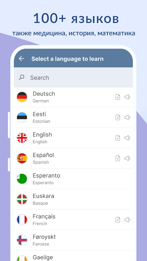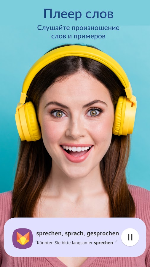 Все новые слова и фразы будут озвучены встроенным синтезатором речи. Можно менять голоса и интонацию. Это особенно удобно, если вы хотите учить языки с правильным произношением.