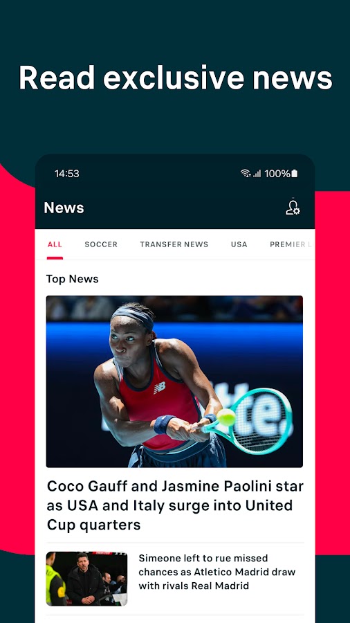 ⭐ Персонализированное избранное: получайте уведомления о главных новостях, голах и персонализированные напоминания о любимых командах, соревнованиях или матчах.
