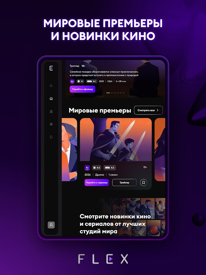 FLEX — онлайн кинотеатр с мировыми хитами, новинками кино и тысячами сериалов. Смотрите фильмы и сериалы онлайн без рекламы, в Full HD и с профессиональной озвучкой — без ограничений.