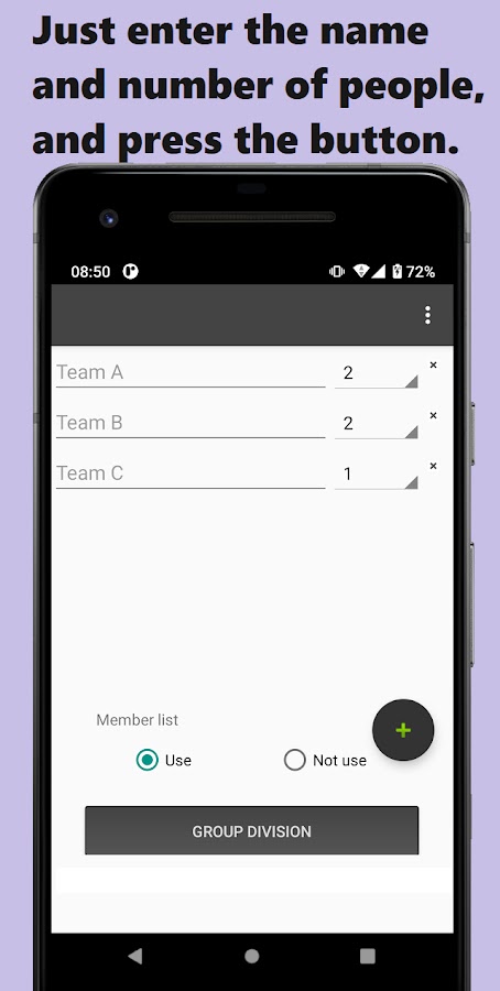 Помимо случайной группировки, это приложение позволяет пользователям свободно настраивать группы. Кроме того, вы можете делиться на группы без регистрации в качестве члена, поэтому вы можете легко использовать его.