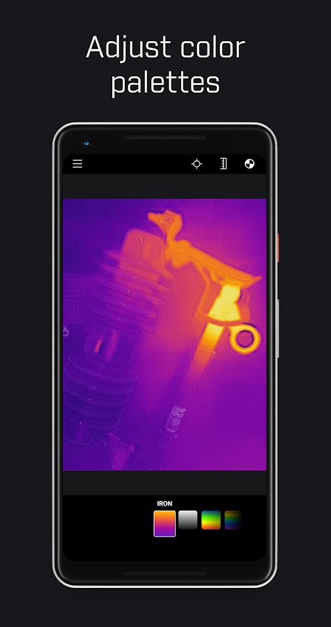 Примечание: Для работы этого приложения требуется подключение тепловизора серии FLIR ONE к смартфону для просмотра изображения с тепловизора. Вы также можете использовать приложение и без него. Подробнее на сайте www.flir.com/flirone.
