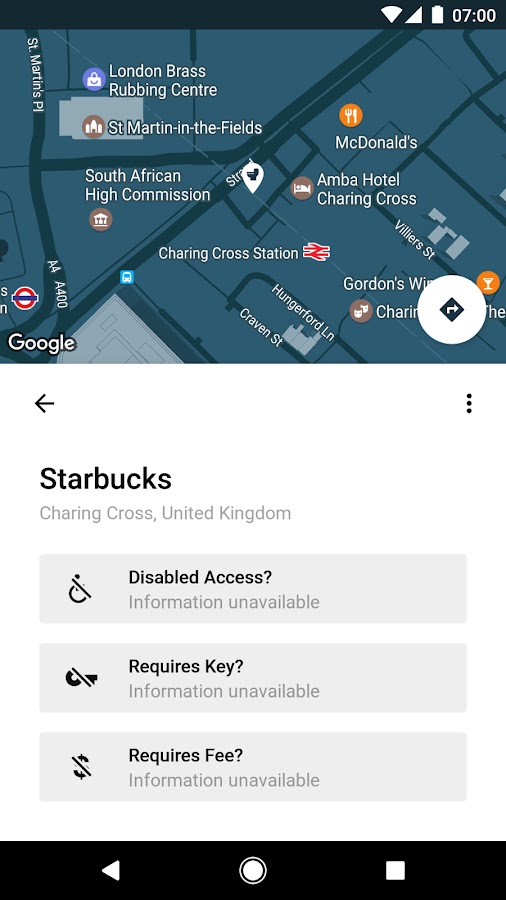 , Найти есть ли туалет плату, требуется ключ или предоставляет доступ инвалидов / доступность
