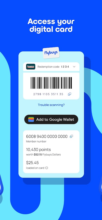 Используйте приложение для сканирования вашей цифровой карты на кассе или добавьте товары Flybuys в свой цифровой кошелек.