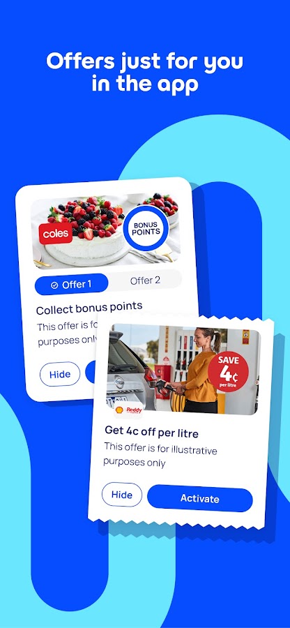 Установите свои предпочтения по топливу в приложении, получите баллы или скидку 4 цента за литр в Coles Express и Reddy Express.