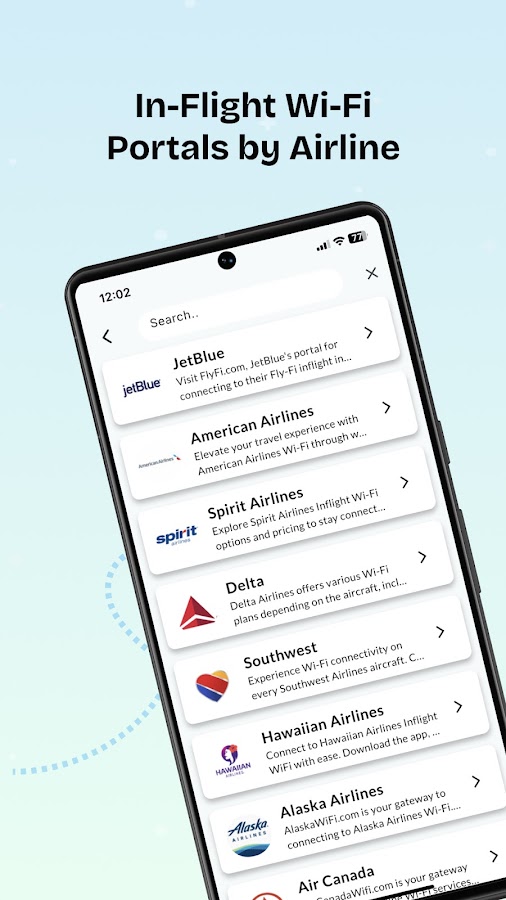 • Связанные путешествия: воспользуйтесь руководством по подключению к общественному Wi-Fi в аэропорту/авиакомпании и автоматически подключайтесь к Wi-Fi на борту (если доступно).