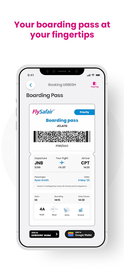 Приложение FlySafair позволяет вам полностью контролировать свое путешествие. Скачайте его прямо сейчас и наслаждайтесь всем этим и многим другим с самым популярным лоукостером Южной Африки.
