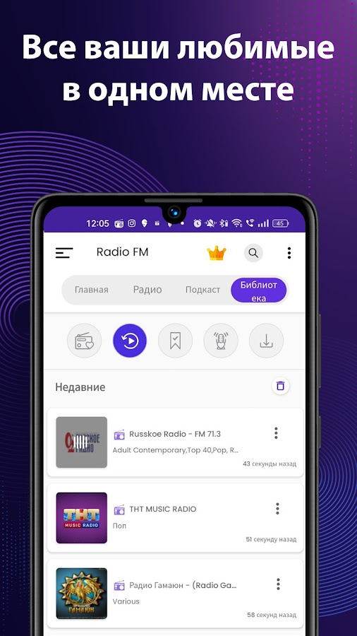 Radio FM — единственное бесплатное приложение для прослушивания радио, которое объединяет FM-радио, AM-радио, интернет-радио и подкасты в одном удобном приложении.