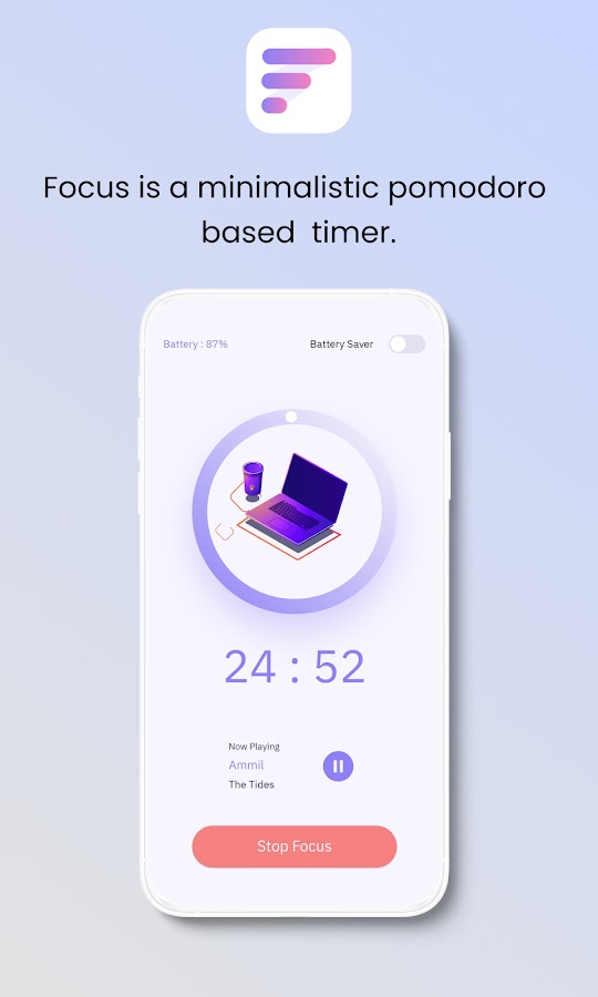 Focus — это минималистичное приложение-таймер, основанное на технике помидора.