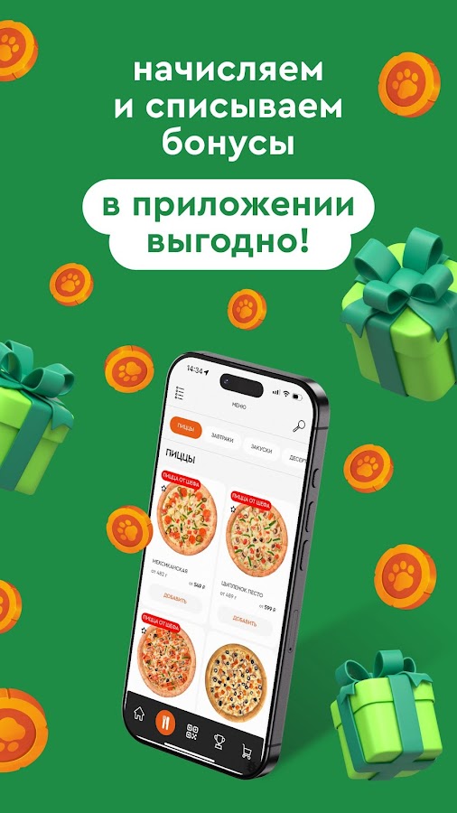 После установки приложения вам будет доступен подарок на первый заказ — наш бестселлер «Пепперони» 25 см. Данная пиццуля обладает невероятным воздействием на рецепторы, особенно в сочетании с колой или морсиком фоксиком. Важно совершить заказ от 999 рублей и применить промо-код FIRST. Обязательно попробуйте сытный wok и один из наших десертов, например, рулетики с брусникой.