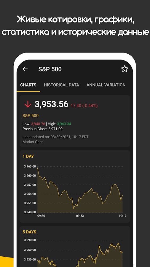 Текущие котировки, графики, статистика и исторические финансовые данные по акциям, индексам, фьючерсам, сырьевым товарам, валютам, облигациям, опционам и многому другому.
