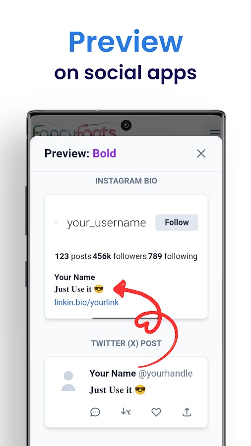 Простота использования: просто введите текст, выберите стиль и скопируйте одним касанием.
