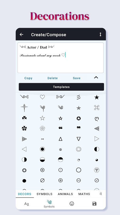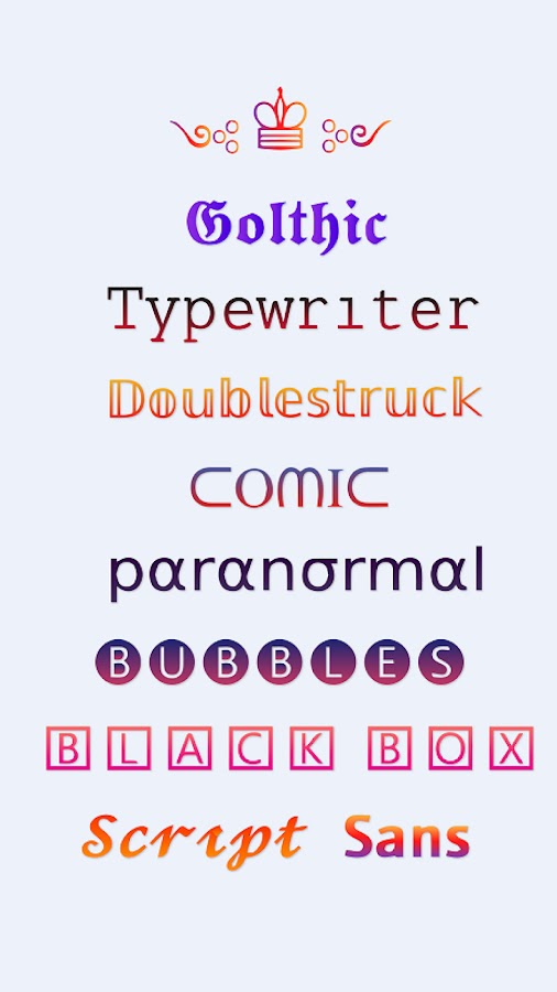 Украсьте свои сообщения, напишите свое имя смайликами, добавьте символы в текст и напишите свою биографию в социальных сетях с помощью потрясающих шаблонов приложения Font Generator! Возможности Fancy Text Changer безграничны!