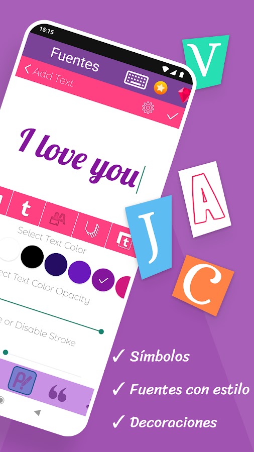 Приложение для текстового искусства позволяет выбирать любой цвет букв, прозрачность шрифтов или поворот текста. Создатель шрифтов дает вам возможность добавлять текст на фото или размещать свои стильные красивые шрифты на любом фоне. Просто используйте нашу функцию текста на фото, и вы сможете писать на фото из своей галереи или использовать один из наших множества цветов и фонов. Столько возможностей с этим приложением для создания шрифтов. Ваше воображение – это предел! Приложение для создания шрифтов имеет множество замечательных стилей текстового искусства и стильных шрифтов, включая винтажные, ретро или любовные красивые шрифты на фото. 💥
