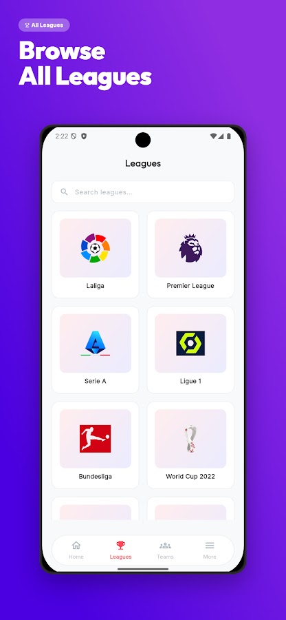 * Интеллектуальный поиск для фильтрации вашего любимого клуба, лиги или страны.
