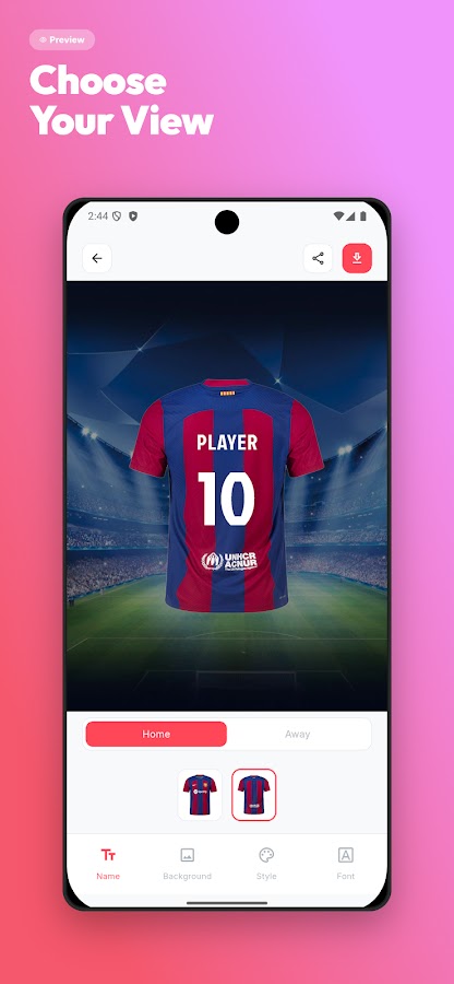 Создайте майку своего любимого футбольного клуба или любимой международной футбольной команды кончиком пальца! Продемонстрируйте любовь к своей любимой футбольной команде, создав футбольную майку со своим именем.