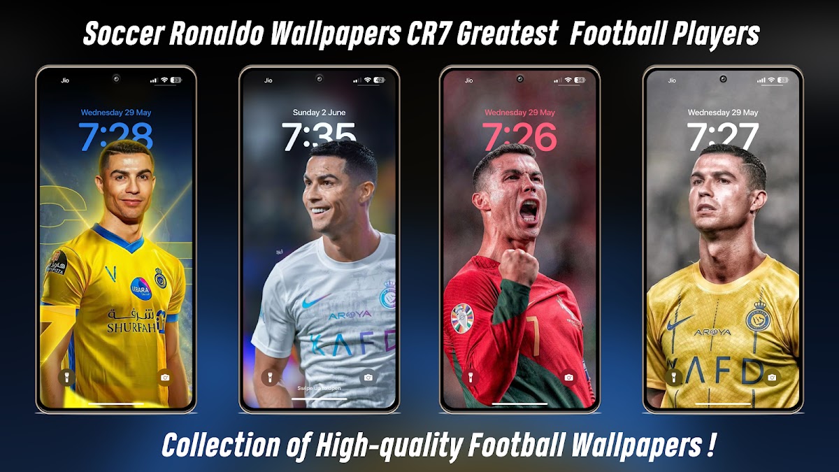 Soccer Ronaldo Wallpapers CR7 2025 — комплексное приложение для поклонников Криштиану Роналду, предлагающее обширную коллекцию высококачественных обоев с изображением легендарного футболиста.