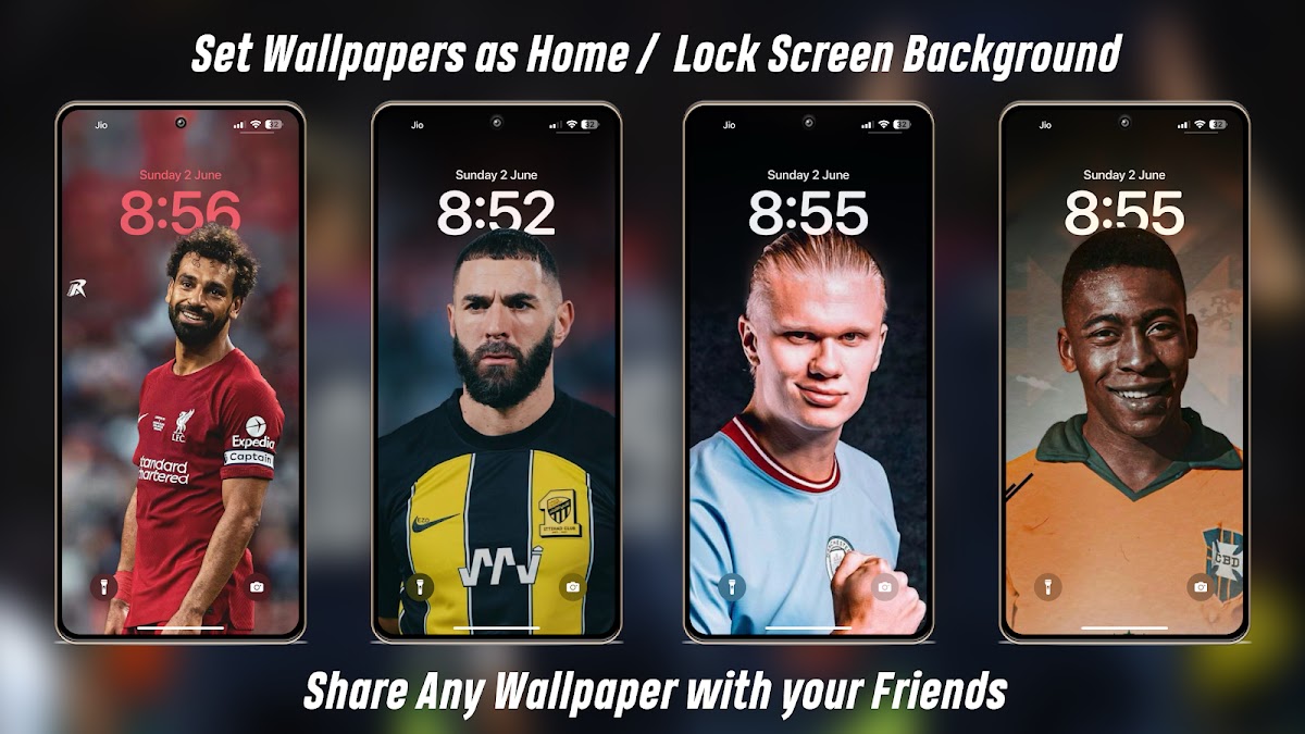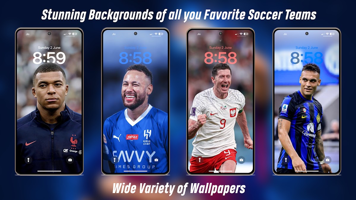 В приложении футбольные обои для вас будут отображаться только обои, подходящие по размеру вашего экрана. Все изображения высокого качества и различного разрешения. Поддержка любых устройств, включая устройства с большими экранами: HD 720×1080 и 1080×1920 пикселей (Full HD, 1080p).