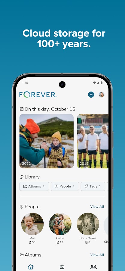 FOREVER® — это единственный в мире сервис для хранения воспоминаний, гарантирующий безопасное и бессрочное хранение ваших фотографий, видео, аудиофайлов и документов на протяжении всей вашей жизни плюс 100 лет. Приложение FOREVER для Android позволяет легко сохранять, организовывать и делиться вашими воспоминаниями на ваших условиях. Вы являетесь владельцем всего своего контента, мы никогда не будем собирать или продавать ваши данные. Благодаря нашей гарантии, а также автоматическому обновлению всех ваших файлов до отраслевых стандартов с течением времени, вы можете наконец-то быть спокойны, зная, что ваши воспоминания будут надежно передаваться из поколения в поколение.