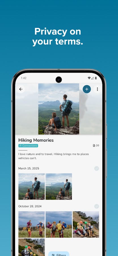 • Без рекламы, серьезно: Мы никогда не используем сторонние рекламные платформы. Мы никогда не будем продавать или использовать ваши данные, ваши воспоминания — ваши.