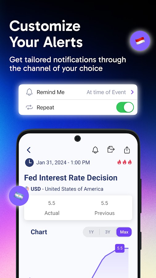 Set personalized reminders and receive timely forex-trading notifications, ensuring you never miss crucial market events or updates.